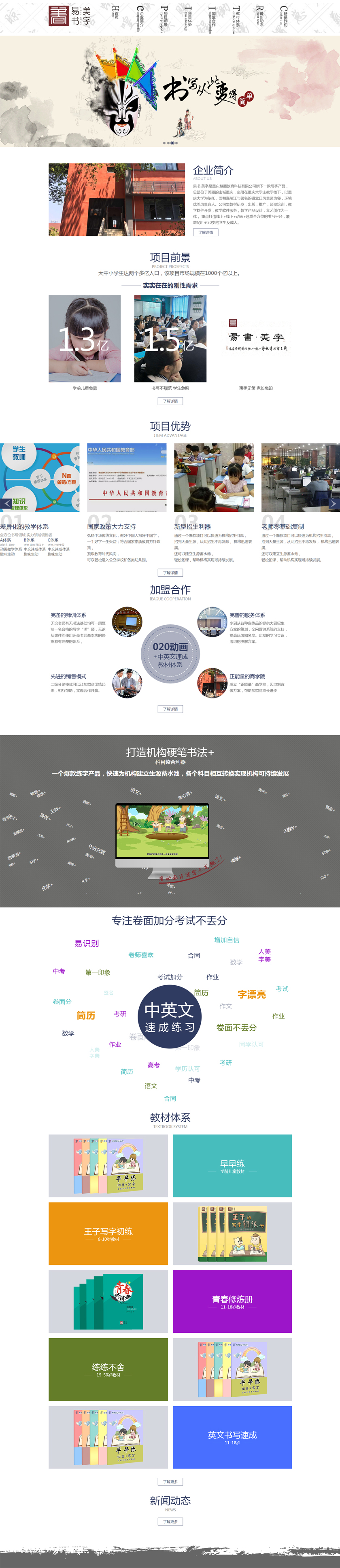 Project Description 易书.美字练字是重庆慧墨教育科技有限公司旗下一款写字产品,总部位于美丽的山城重庆,坐落 在重庆大学主教学楼下,以重庆大学为依托,面朝嘉陵江与著名的磁器口风景区为邻,环境优美 风景宜人。公司集教材研发,出版,推广,师资培训,教学软件开发,教学软件服务,教学产品 设计,文艺创作为一体,重点打造线上+线下+动画+速成全方位的书写平台,覆盖5岁至50岁的学 ... Official website address 昭通# I want to share