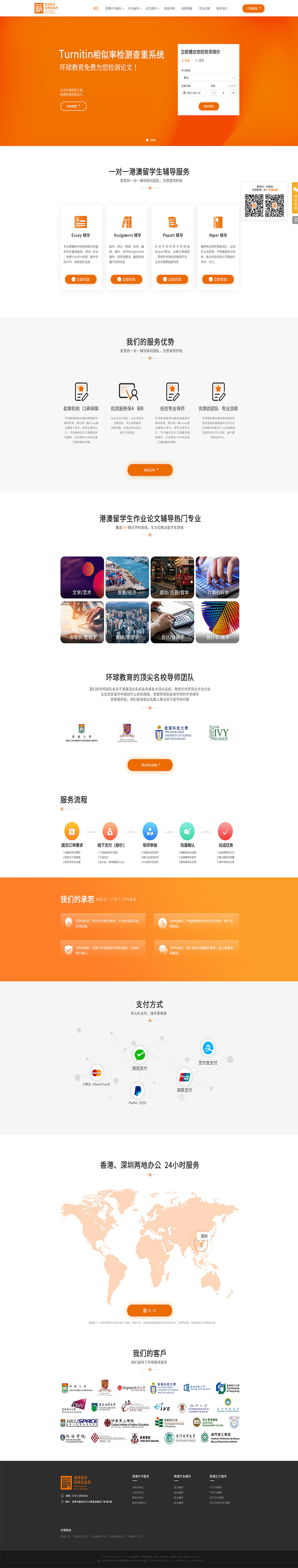 环球教育拥有完善的港澳留学辅导机制,面对每一篇Essay都注重每个细节。留学生提供论文、写作辅导及论文查重检测的服务,已经拥有10年的经验,口碑质量有保障。